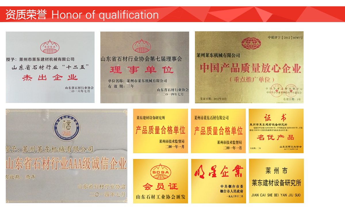山東萊州萊東機械有限公司(原萊州萊東建材設備研究所),是專業研究生產石材機械的骨干企業,常年與國內幾家知名大學和設計院合作研究開發,不斷推陳出新。